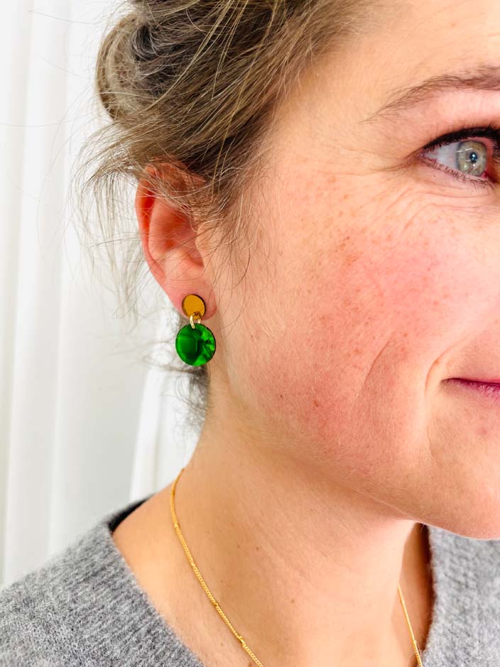 Make-up und Parfüm kann der Ton ggf. ohne Legierung aufnehmen. Reinige die Ohrringe bei Bedarf mit einem Feuchttuch oder sanft mit Spülmittel.