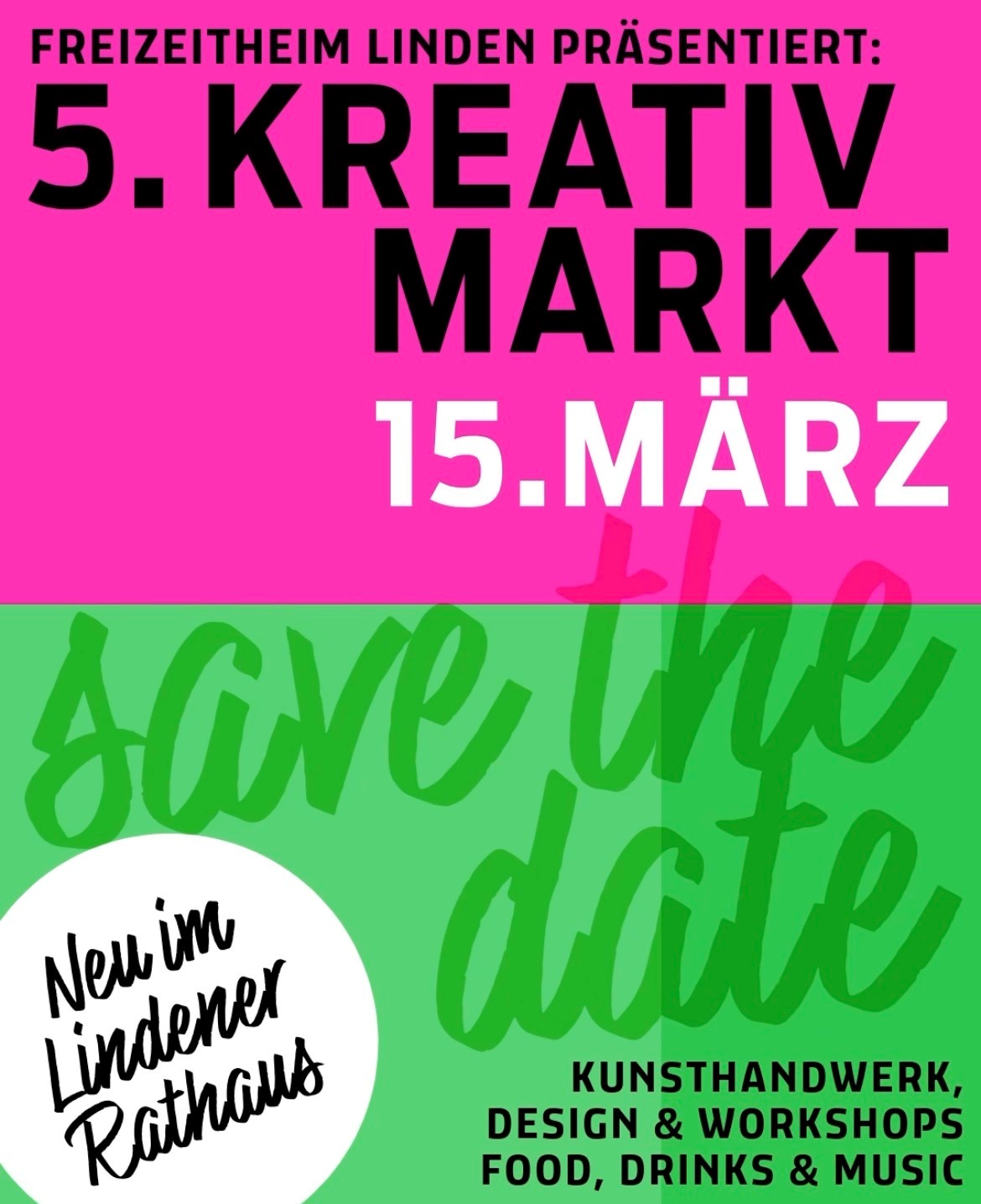 Am 15.03.2026 findet bereits zum 5. Mal der Kreativmarkt statt – dieses Jahr erstmals im Lindener Rathaus am Lindener Marktplatz. Eintritt frei!