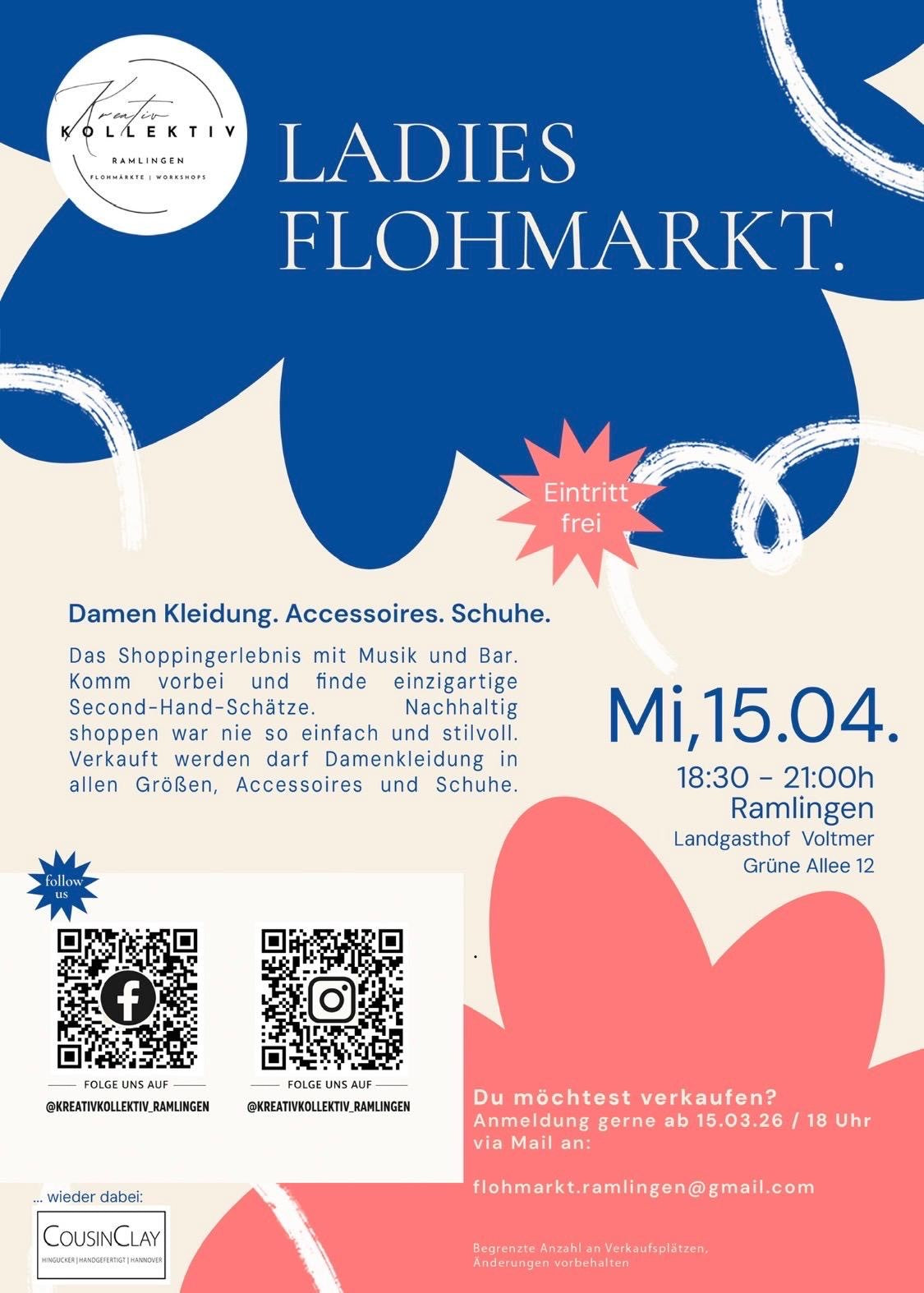 Am 15.04.2026 findet wieder der „Ladies Flohmarkt“ im Landgasthof Voltmer in Ramlingen zwischen Hannover und Celle statt und weil es letztes Jahr bei Familie Köhne, so schön war, kommen wir gern wieder. Eintritt frei!