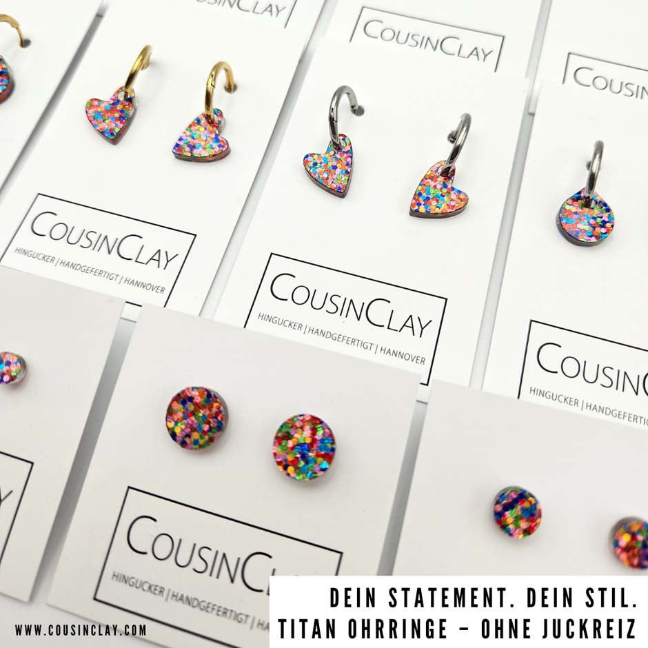 Die Beschaffenheit von Polymer Clay kann abweichen. Jeder Ohrring ist gewissenhaft in Handarbeit gefertigt. Trotzdem kann es zu kleinen Unreinheiten auf der Oberfläche kommen. Das ist unvermeidbar, stört weder die Funktionalität noch die Ästhetik des Produktes. Unsere Hingucker sind einzigartig.