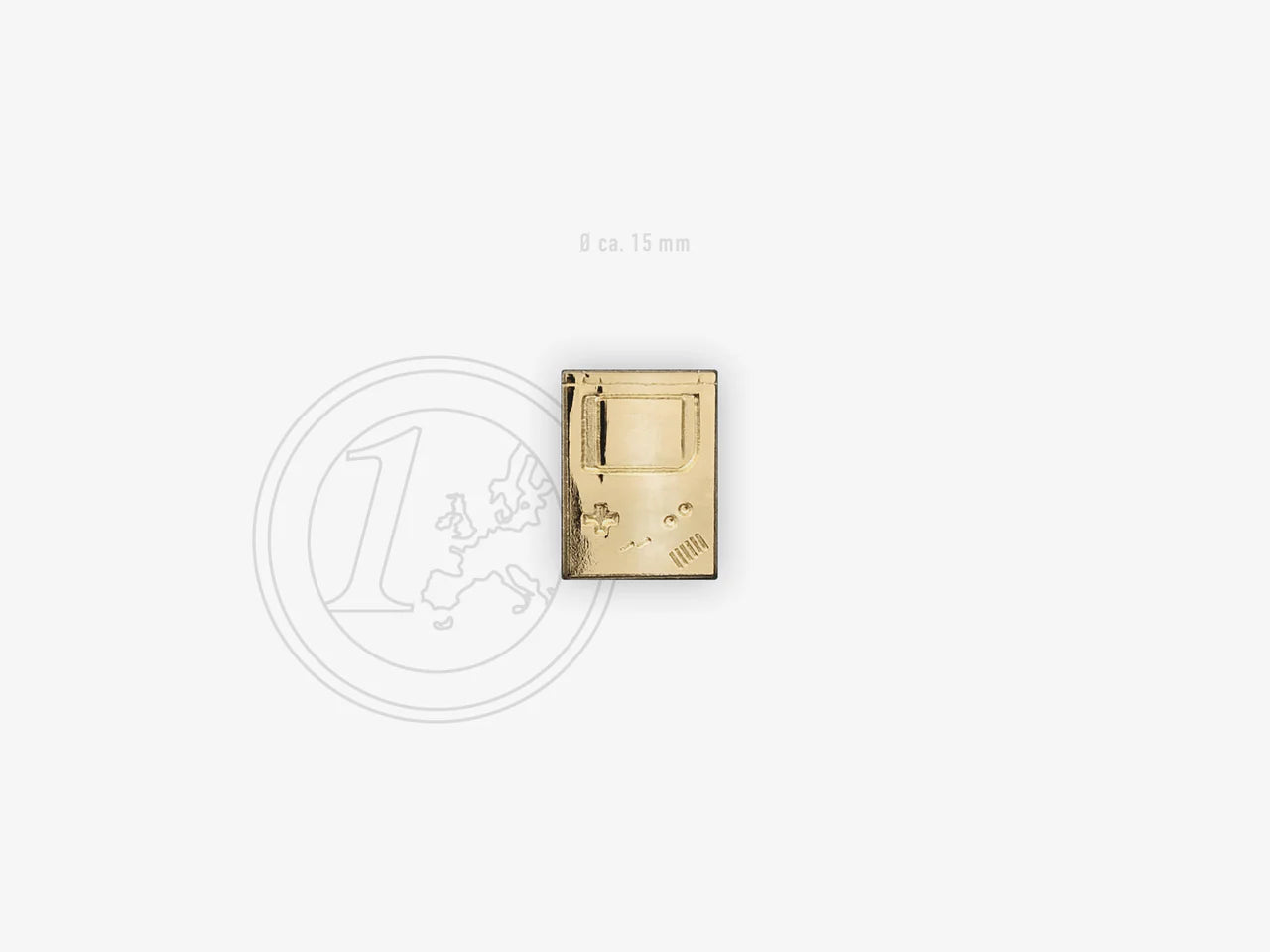 Der Pin ist aus Messing, vergoldet und wird mit einem Butterfly-Verschluss mit Schutzkappe gesichert.