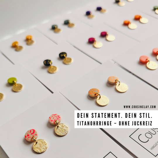 Die Beschaffenheit von Polymer Clay kann abweichen. Jeder Ohrring ist gewissenhaft in Handarbeit gefertigt. Trotzdem kann es zu kleinen Unreinheiten auf der Oberfläche kommen. Das ist unvermeidbar, stört weder die Funktionalität noch die Ästhetik des Produktes. Unsere Hingucker sind einzigartig.